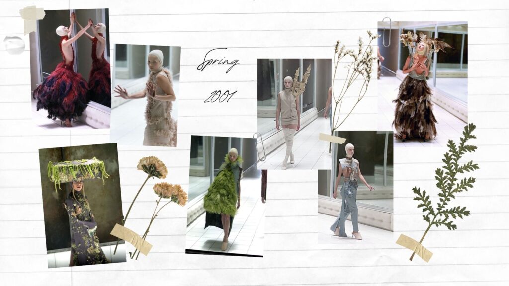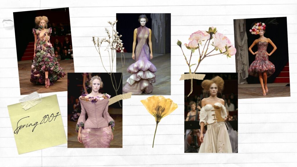 Flora es una colección experimental inspirada en el diseñador de moda Alexander Mcqueen. Recoge elementos de sus colecciones y de su forma teatral y extravagante de ver el arte y la moda.
