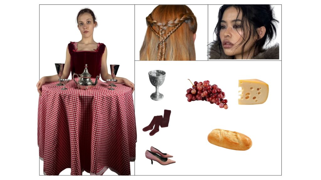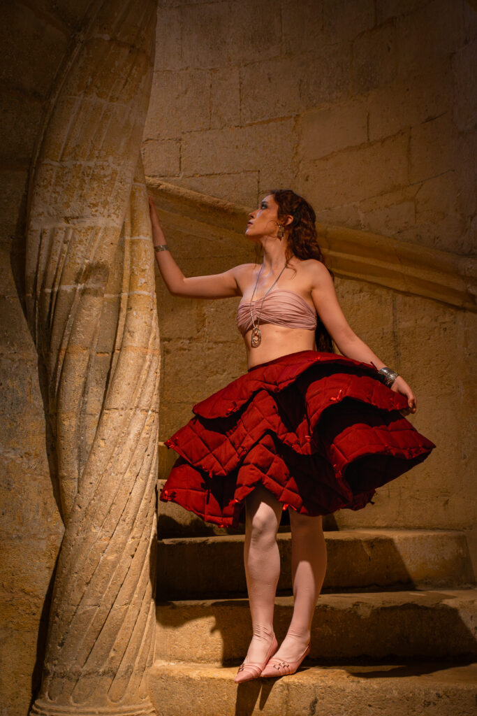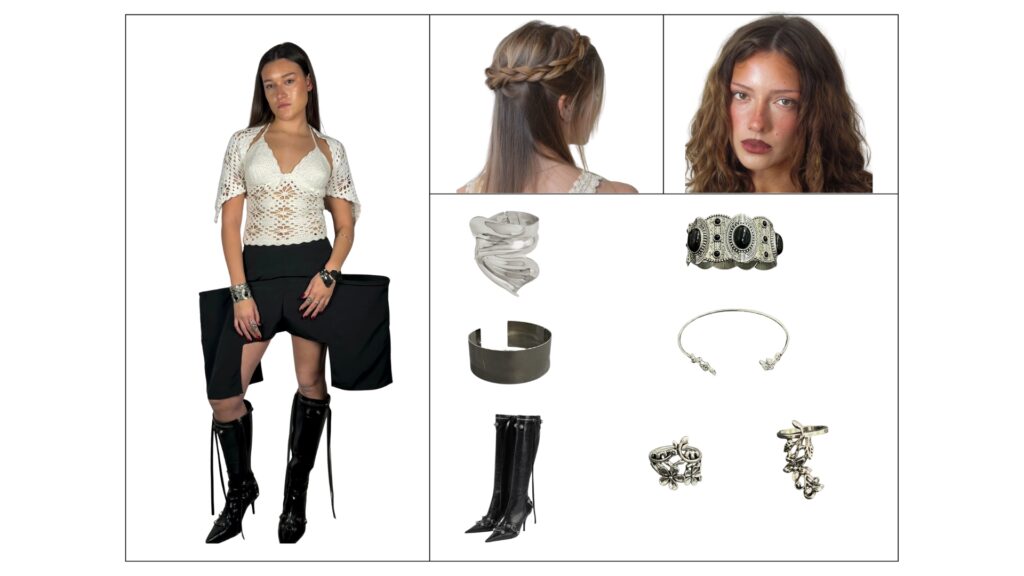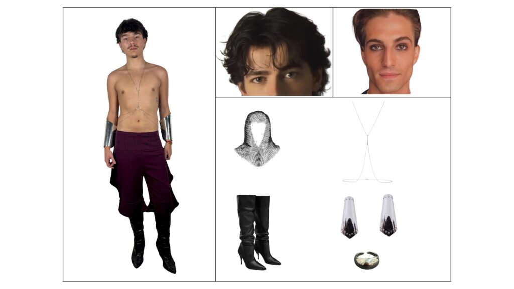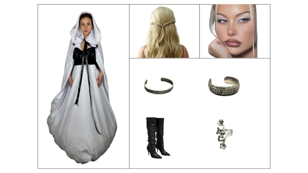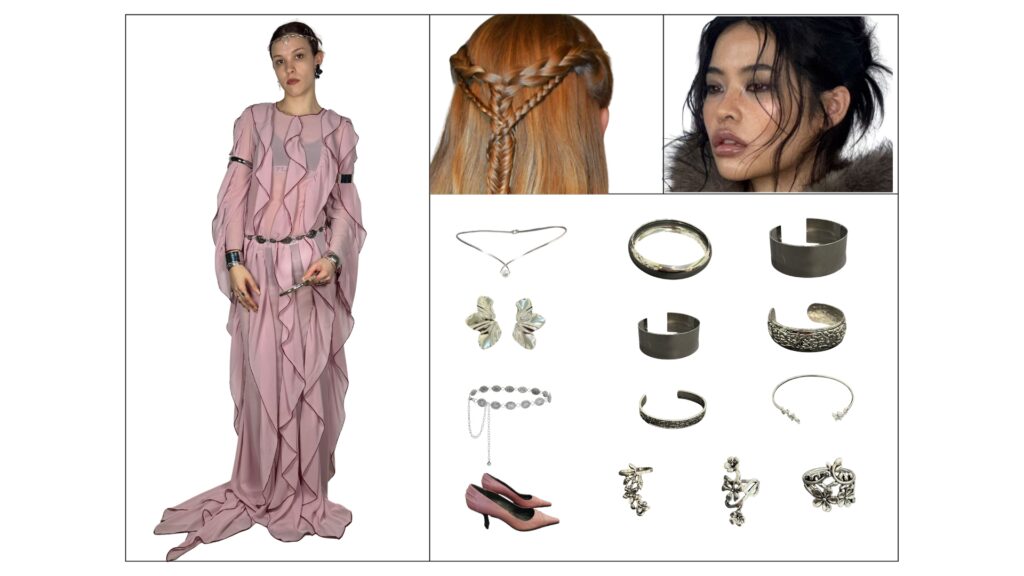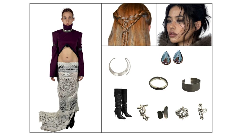 Para realizar los estilismos de este fashion film decidimos sacar de contexto las prendas de cada colección y crear un concepto completamente nuevo. De esta manera, elegimos la figura de Aliénor d’Aquiteine como nuestro referente a la hora de crear los estilismos y la nueva estética de esta colección conjunta. Aliénor d’Aquiteine fue una de las mujeres más poderosas de la Edad Media: duquesa por derecho propio, reina de Francia y de Inglaterra, y figura clave en la política y la cultura de su tiempo. Ejerció autoridad, defendió su autonomía y desafió los límites impuestos a las mujeres en un mundo dominado por hombres.