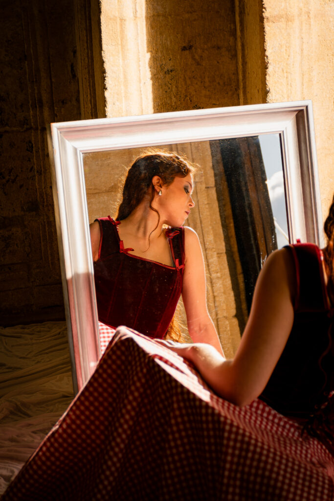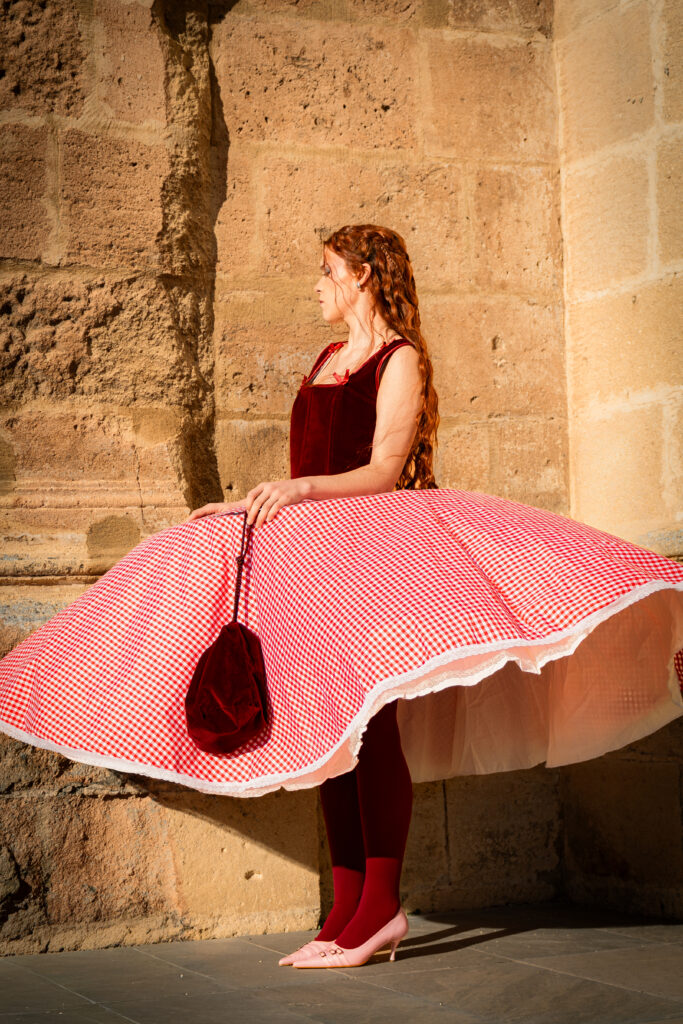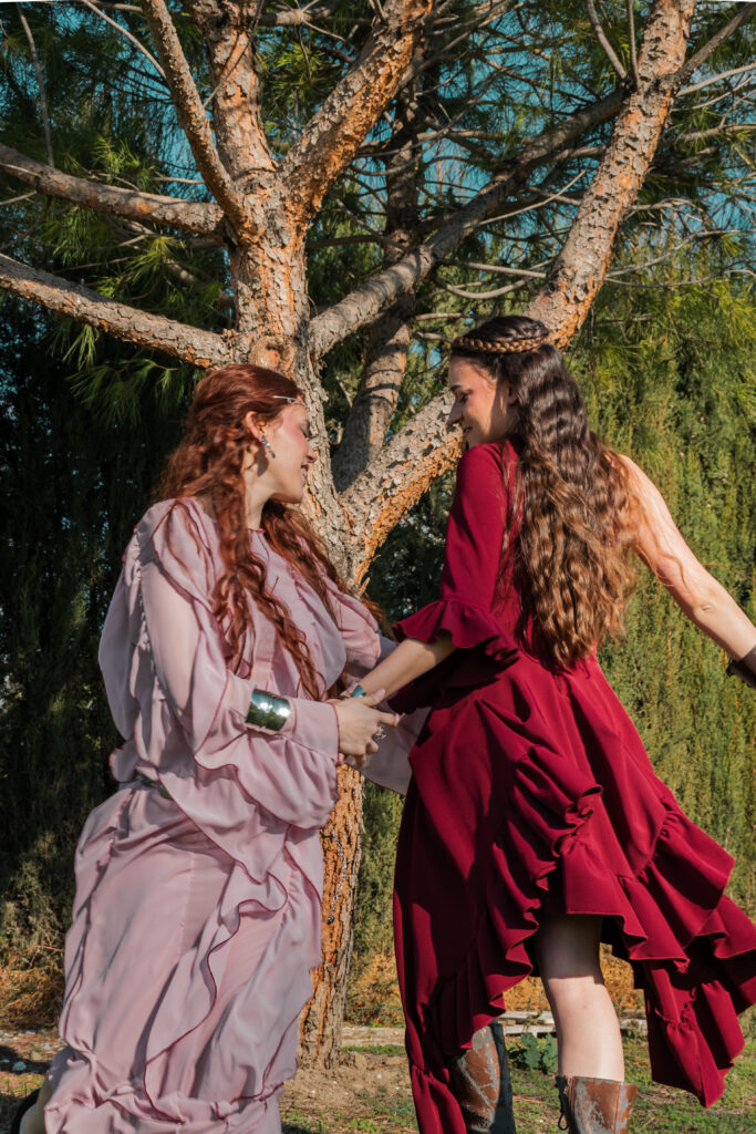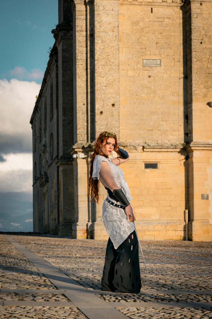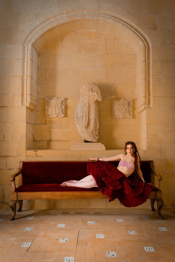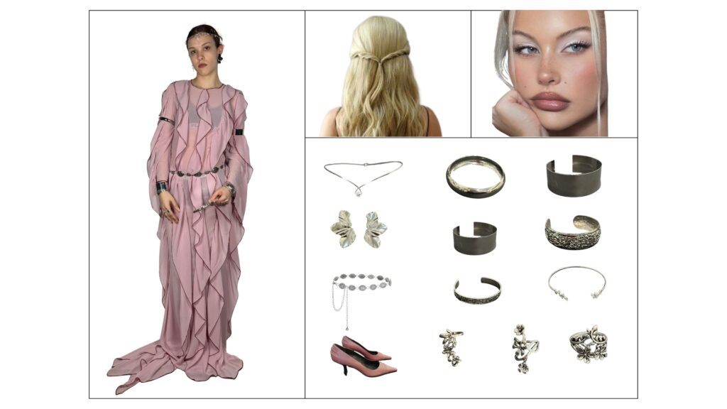 Para realizar los estilismos de este fashion film decidimos sacar de contexto las prendas de cada colección y crear un concepto completamente nuevo. De esta manera, elegimos la figura de Aliénor d’Aquiteine como nuestro referente a la hora de crear los estilismos y la nueva estética de esta colección conjunta. Aliénor d’Aquiteine fue una de las mujeres más poderosas de la Edad Media: duquesa por derecho propio, reina de Francia y de Inglaterra, y figura clave en la política y la cultura de su tiempo. Ejerció autoridad, defendió su autonomía y desafió los límites impuestos a las mujeres en un mundo dominado por hombres.
